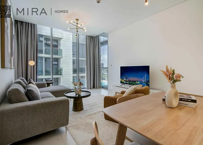 To enjoy your vacation in Dubai, stay at the spacious 73 m^2 Mira Holiday Homes - Luxury 1 Bedroom In District One Dubai apartment, which is at a distance of 4.4 km from the 2000-seat theatre "Dubai Opera" and about a 10-minute drive from Dubai Ice Rink. Access to a private pool ensures a more relaxing stay.
